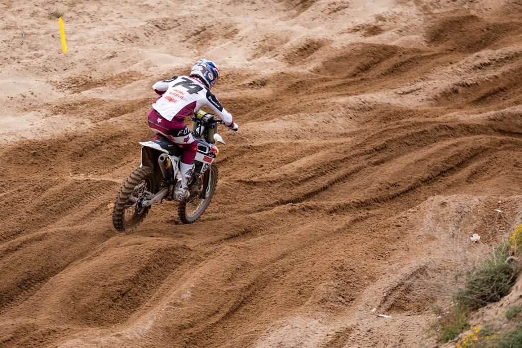 Was das Ganze nochmal einordnet: körperlich ist das nicht optimal. „Ich habe im Moment Probleme mit meinem Daumen“, sagt er. Und meint das nicht beiläufig. Er fährt aktuell so, dass er den Lenker nicht komplett greifen kann. „Ich halte im Prinzip nur mit vier Fingern fest.“ Auf einer 450er ist das genau so unangenehm, wie es klingt.