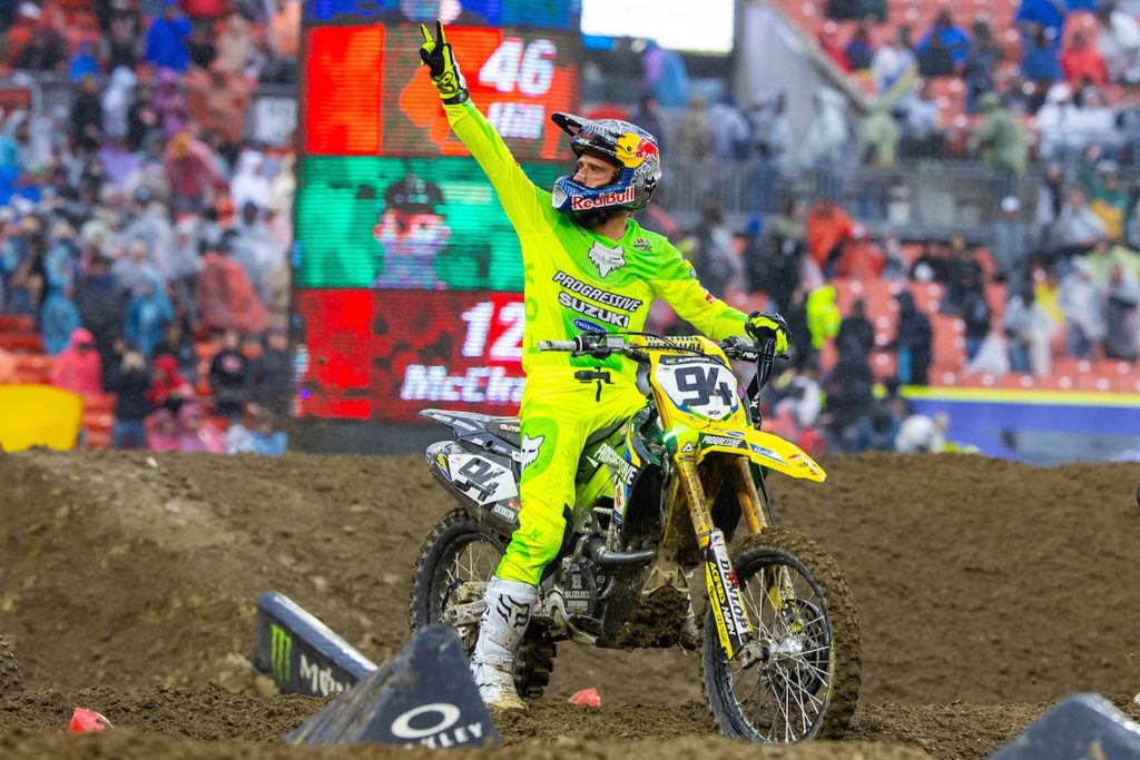 Er hat den dritten Lauf hart gefahren, aber nicht über dem Limit. Und genau das war in Cleveland der Punkt. Die Strecke war nicht komplett im Schlamm versunken, aber sie wurde mit jeder Runde tückischer. Spurrillen, slicke Absprünge, unruhige Landungen. Wer da zu viel wollte, hat verloren.